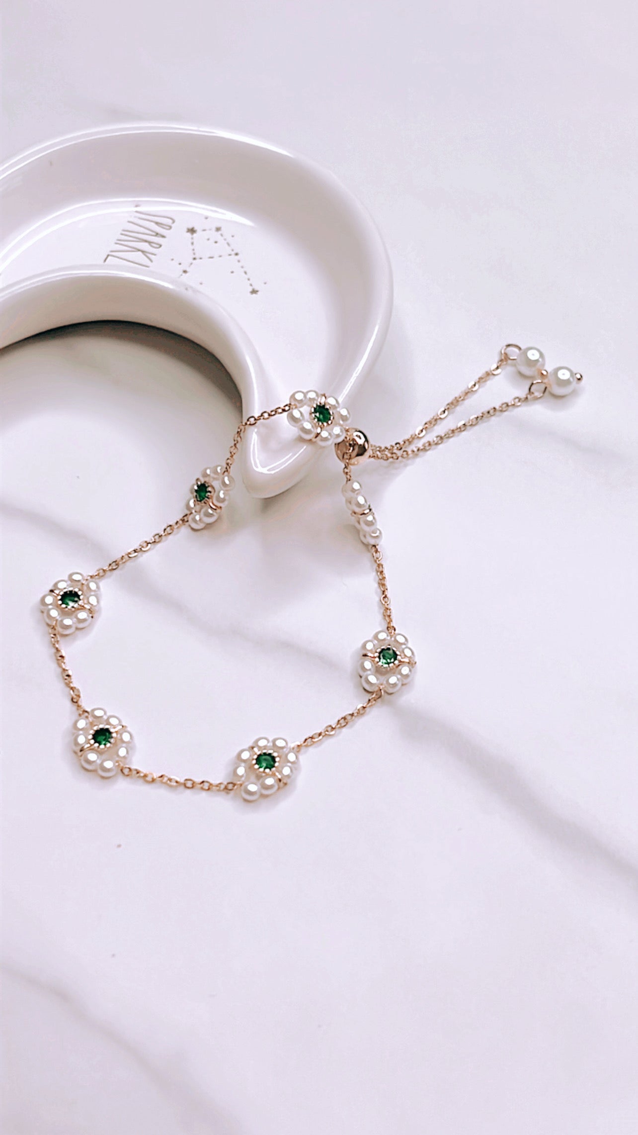 Immerse yourself in the beauty of nature with our enchanting Flower Pearl Bracelet with a touch of Green!